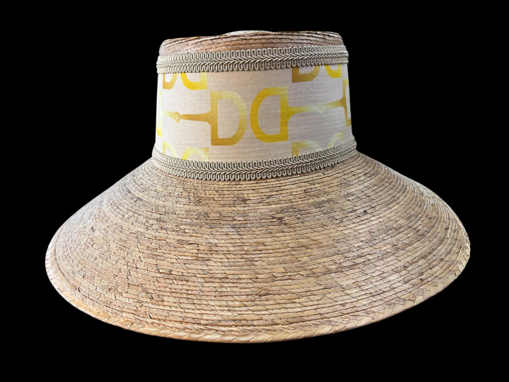 A great new bit pattern around a short back Palm straw . Gino trim and a cream bow in the back.